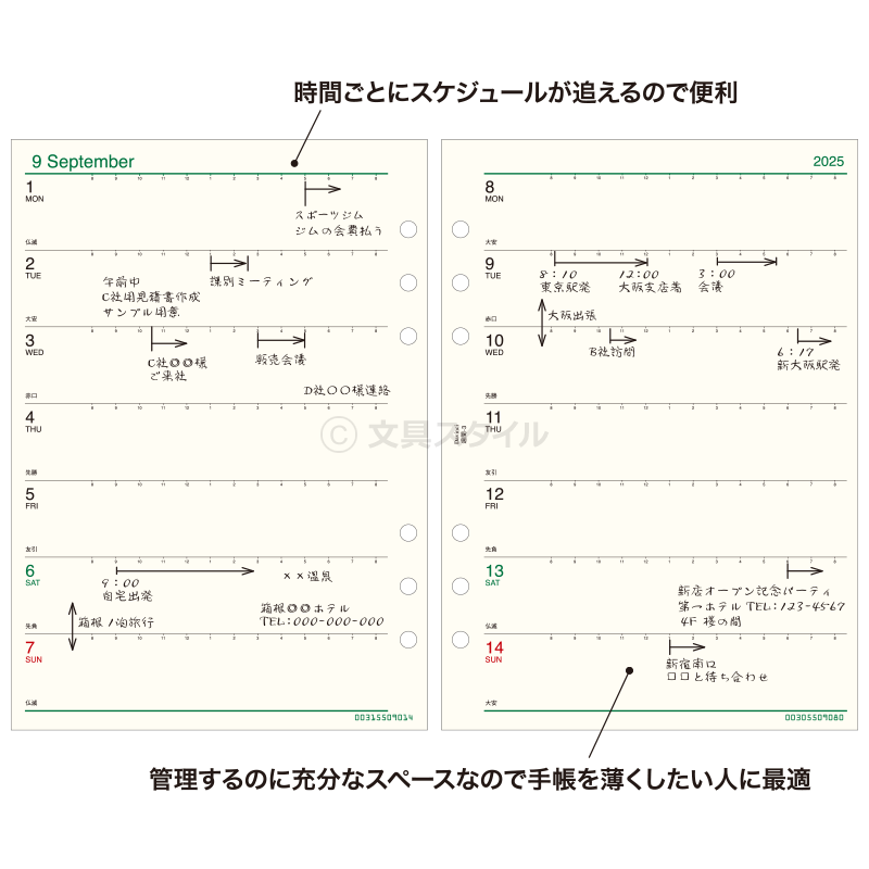時間目盛付なので時間ごとのスケジュール管理がしやすくなっています。
