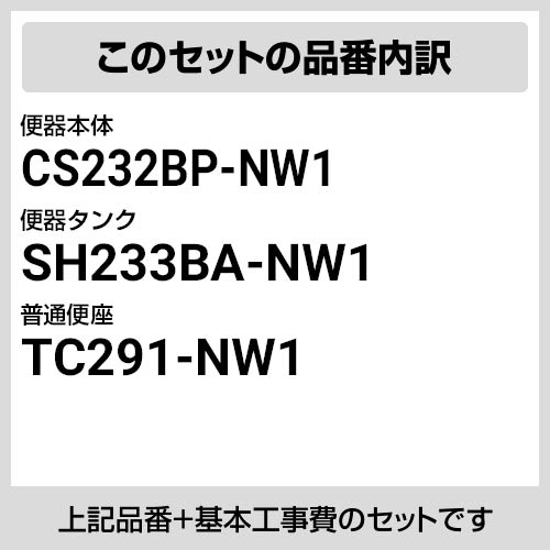 【キーワード】便器 / リフォーム / 商品+基本工事費セット / 取り付け工事込み / ピュアレストQR / 壁排水 / 手洗い有 【 CS230BP--SH233BA-NW1 の後継品 】TSET-A1-WHI-1-120 商品説明シリーズ ピュアレストQRカラー ホワイト仕様・特徴 壁排水排水心:120mm普通便座組み合わせ便器手洗あり商品構成 便器本体:CS232BP-NW1×1便器タンク:SH233BA-NW1×1普通便座:TC291-NW1×1工事費:CONSTRUCTION-TOILET×1