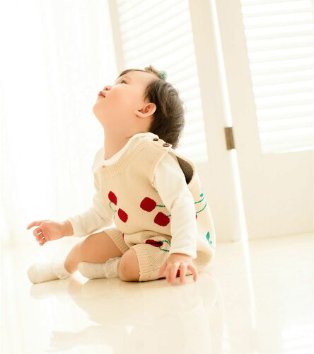 さくらんぼ柄がキュートなベビー用ニットロンパースです。